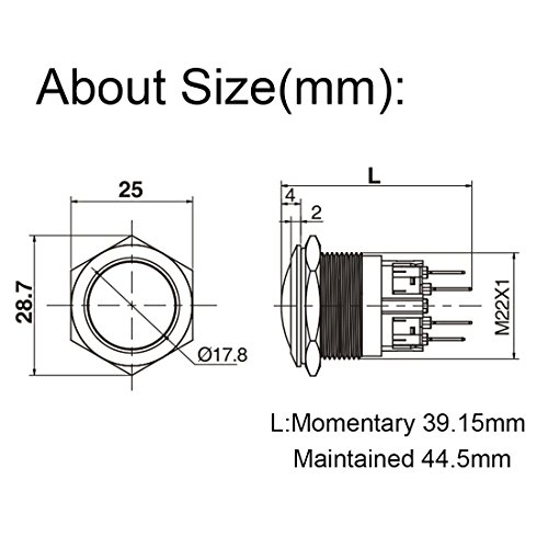 uxcell UL 22mm 0.87" AC 5A 250V Mounting Thread Domed Round 1NO 1NC DPST Latching Stainless Steel Metal Waterproof Push Button Switch