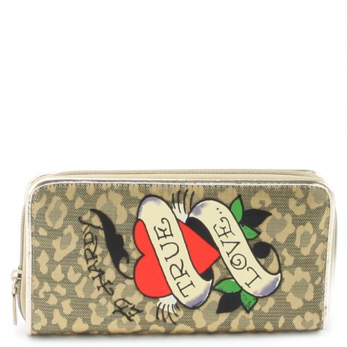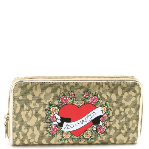 For the perfect blend of fashion and function, This stylish Ed Hardy Spring Zip Around Wallet. Features: Printed tatto in vibirant colors, Ed hardy on the back, It has the organization you need inside a full size cash slot, a center zip pouch, ID window and 10 card slots. Stay organized and fashion forward with this eye-popping wallet from Ed Hardy.