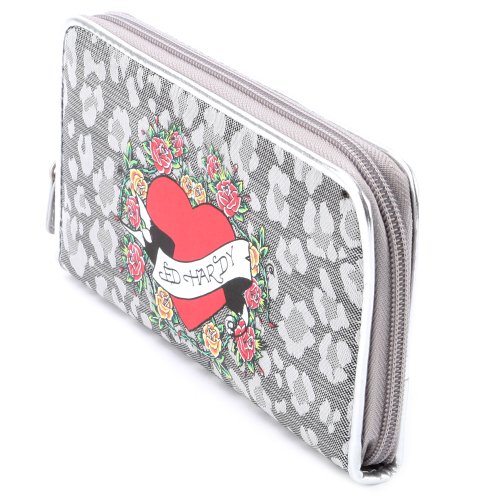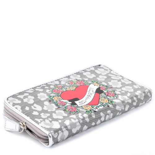 Ed Hardy On The Go Spring Zip Around Wallet - Silver
