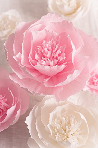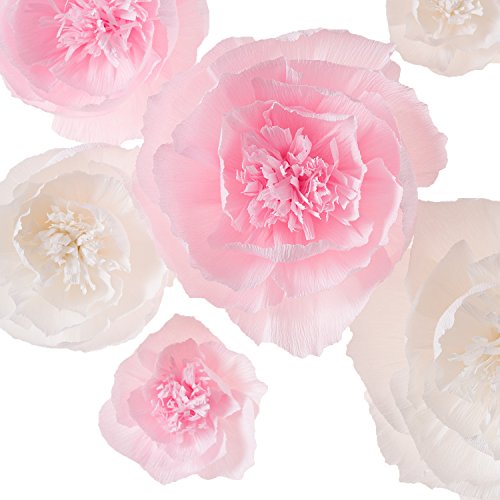 Paper Flower Decorations, Giant Paper Flowers (Pink and White, Set of 6), Handcrafted Flowers, Crepe Paper Flower for Wedding Backdrop, Nursery Wall Decorations, Archway Decorations, Baby Shower