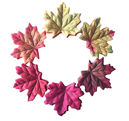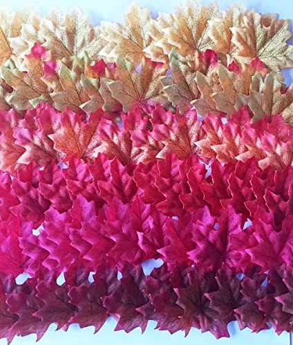 Helen Ou @ 6 Mixed Colors 300 Pcs Artificial Silky Maple Leaves for Fall Weddings or Happy Events or Home Decoration