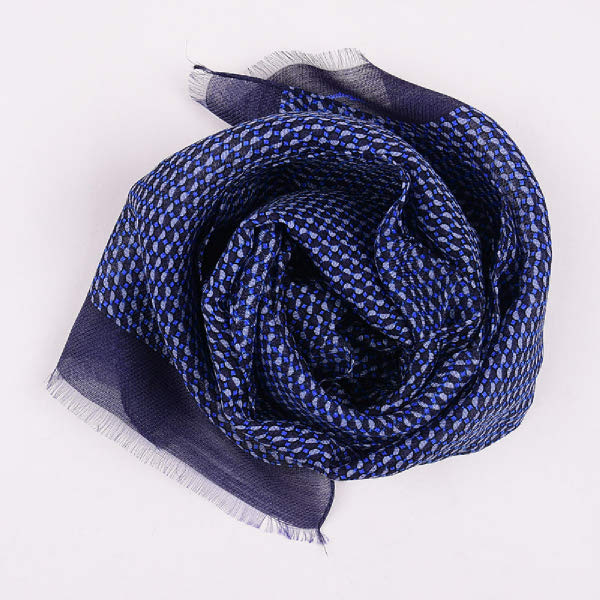 기하학 모티브와 깔끔한 컬러 매치가 돋보이는 간절기용 울실크 스카프.