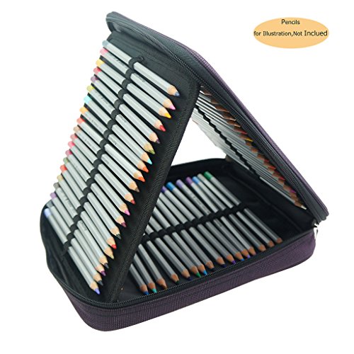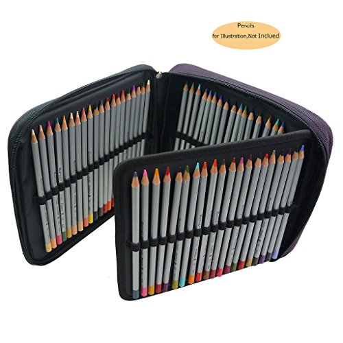 CREOOGO Colored Pencil Case 120 Slots Pencil Holder with Zipper for Artist Adult Coloring Fan Portable Safety Bag Organizer Purple