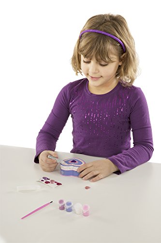Includes wooden heart box, 12 gem stickers, 4 pots of paint, paintbrush, glitter glue, and white glue