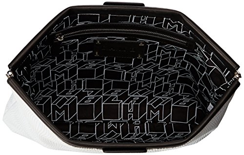 Hinge closure. Signature logo embossed detail in front and back. Lined interior. Interior back-wall zip pocket. Two interior slip pockets. Imported.