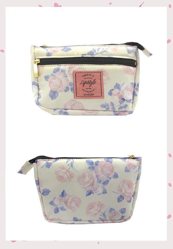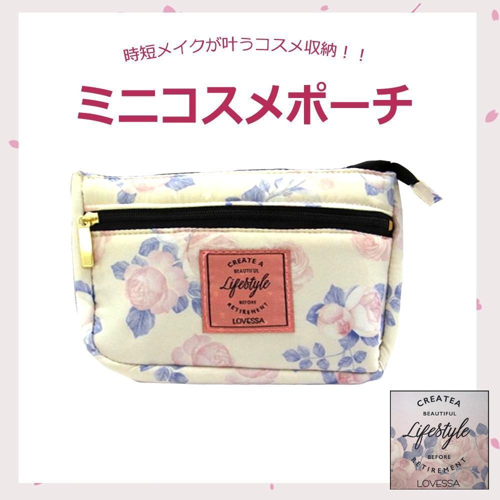お出かけする時にぴったりなミニサイズポーチ。小さめなのに、マチとポケットでしっかり収納できます♪ 製造国:中国 素材・材質:本体外側/ポリエステル本体内側/裏地:ポリエステル、芯材:ポリエチレン 商品サイズ:W160×H100×D30mm ※サプライヤー直送品 ご注文後2~3営業日後の出荷となります【商品名】LOVESSA コスメポーチシリーズ ミニコスメポーチ TP12163