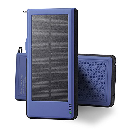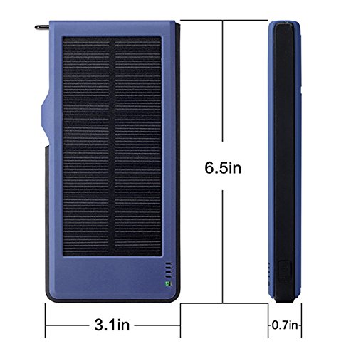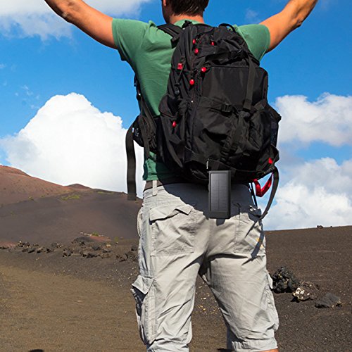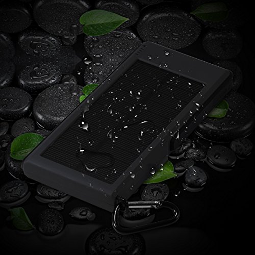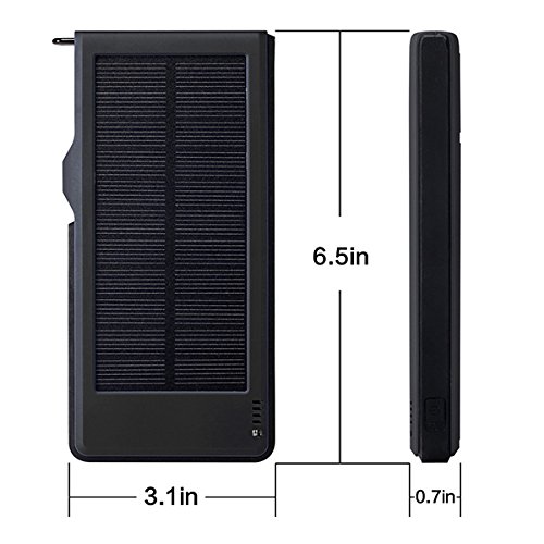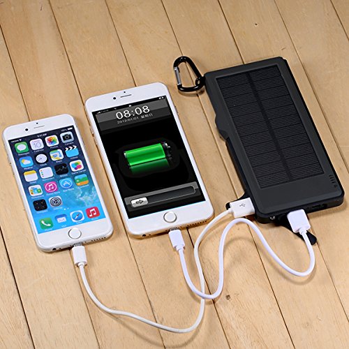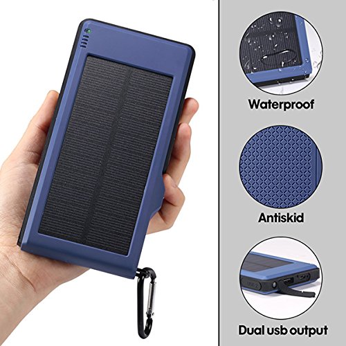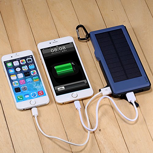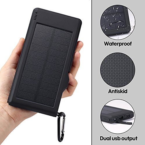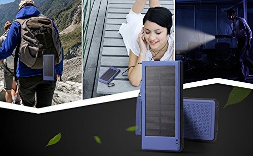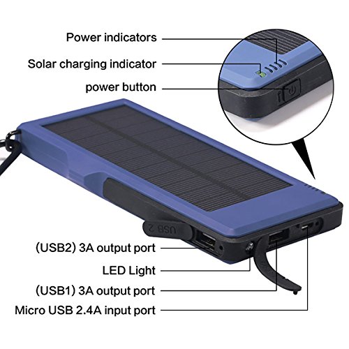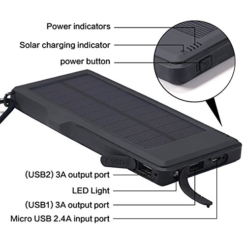 1: Kraftvoll*10000mAh hoher Kapazitat, Dual USB-5V/3A Output-Ports und einnem Micro-USB-Eingang, Dual USB kann 2 Geraten Schnell Laden auf einmal; Solarenergie Technologie kann das Ladegerat selbst Sonne aufladen fur den Notfall.