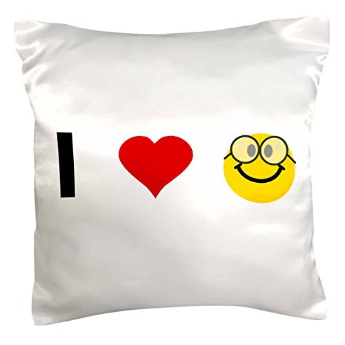 3dRose I love heart geeks - cute geeky nerdy smiley face with glasses - geek nerd pride nerdfighter nerds - Pillow Case, 16 by 16-inch (pc_113101_1)