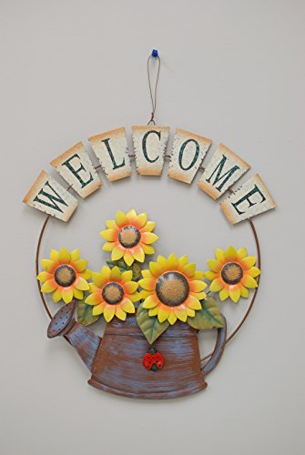 Attraction Design Metal Welcome Sunflower/Watering Can Wall Hanging