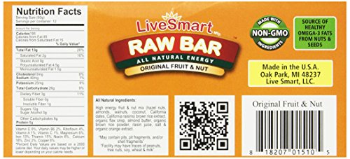 Live Smart Raw Bar, Original Nutty Fruit, 1.76 Ounce (Pack of 12)