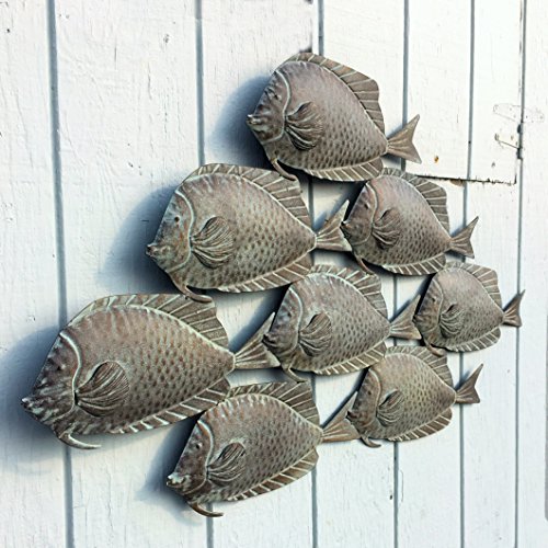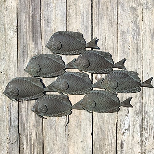 - A CINCH TO HANG Easy to install, the back of this sculpture is equipped with a convenient picture hanger. Organically organized, as in nature, each of the 8 fish in this cluster boast beautiful details. Tooled lines and raised bumps come together to form fins, scales and eyes in a well-orchestrated composition.