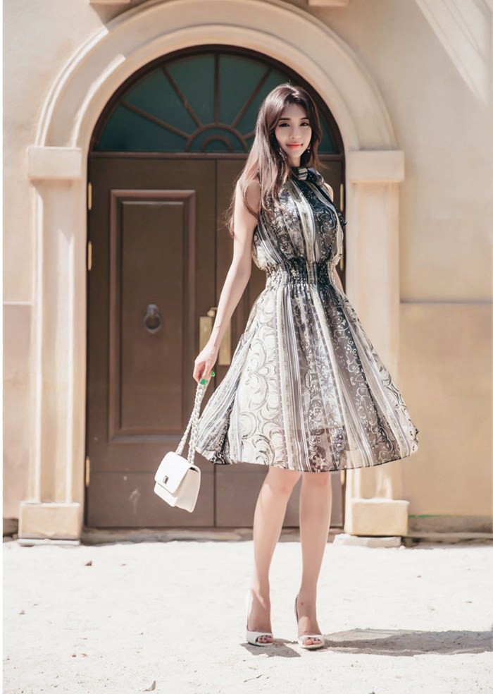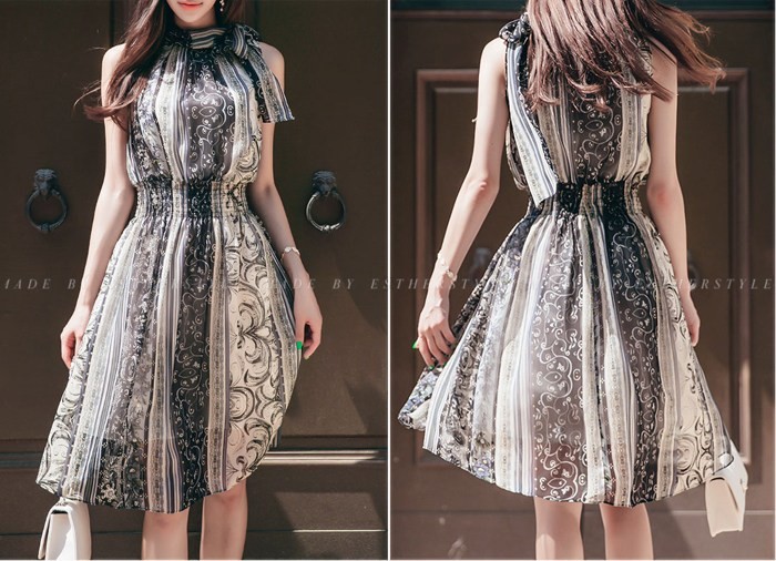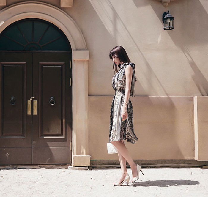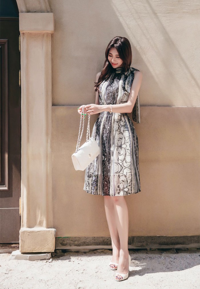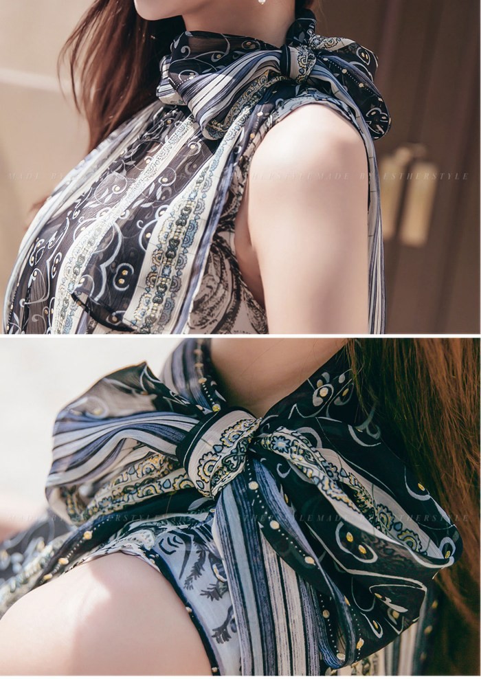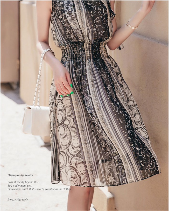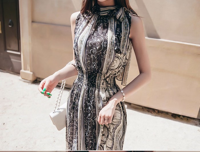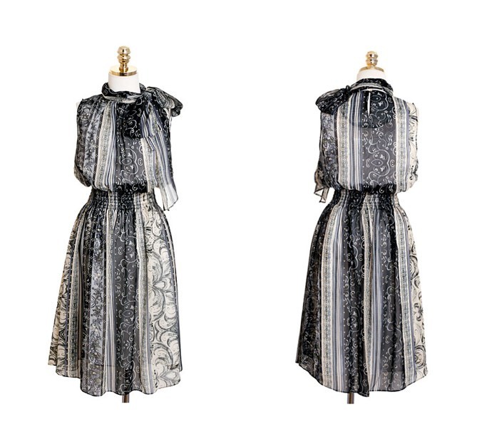 商品名:ワンピース ペイズリー柄 ノースリーブ 膝丈