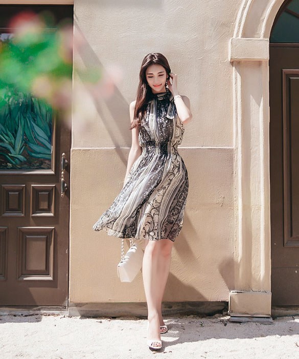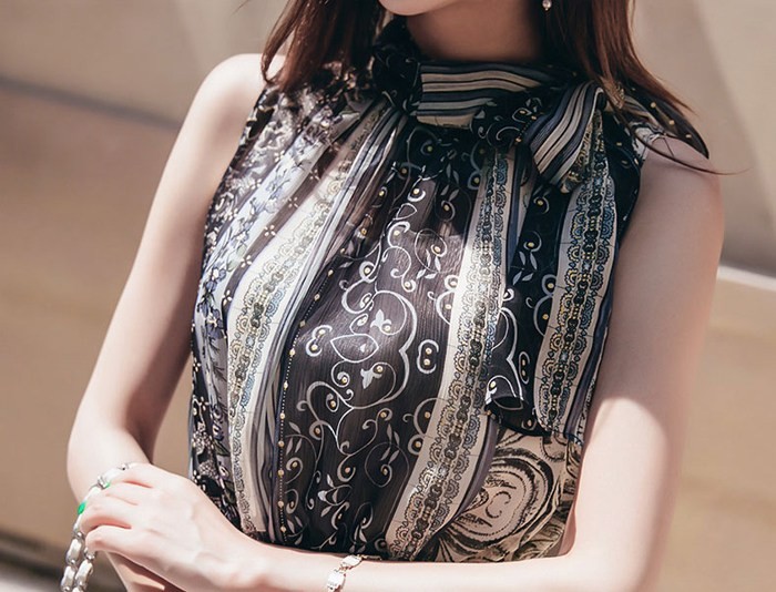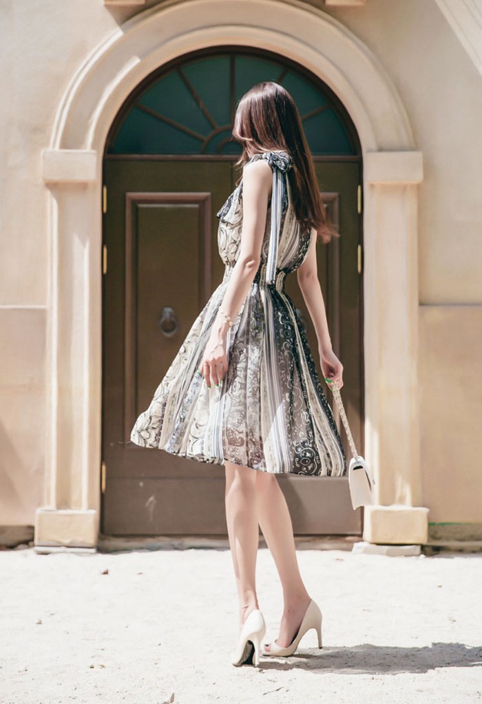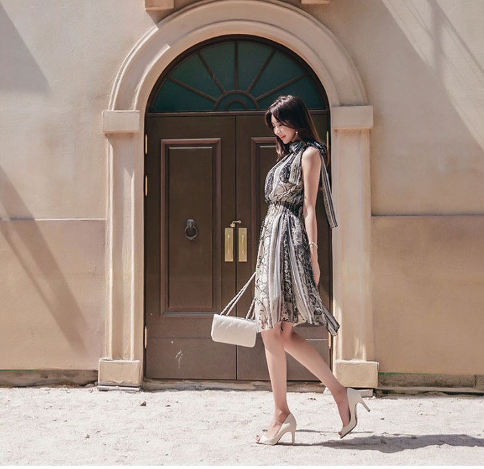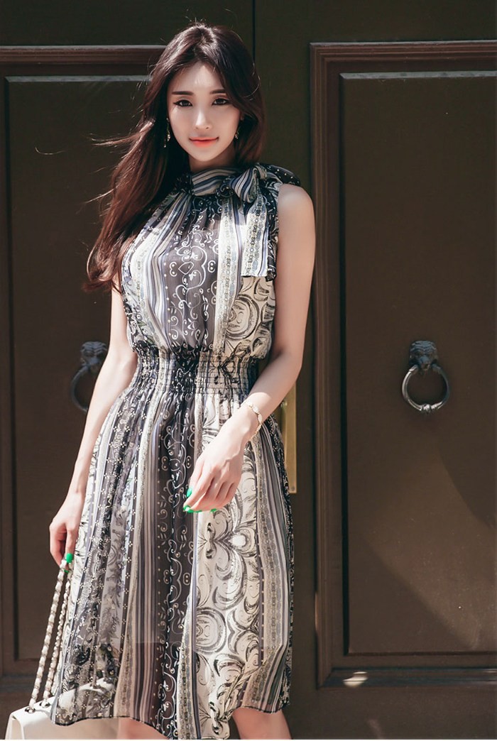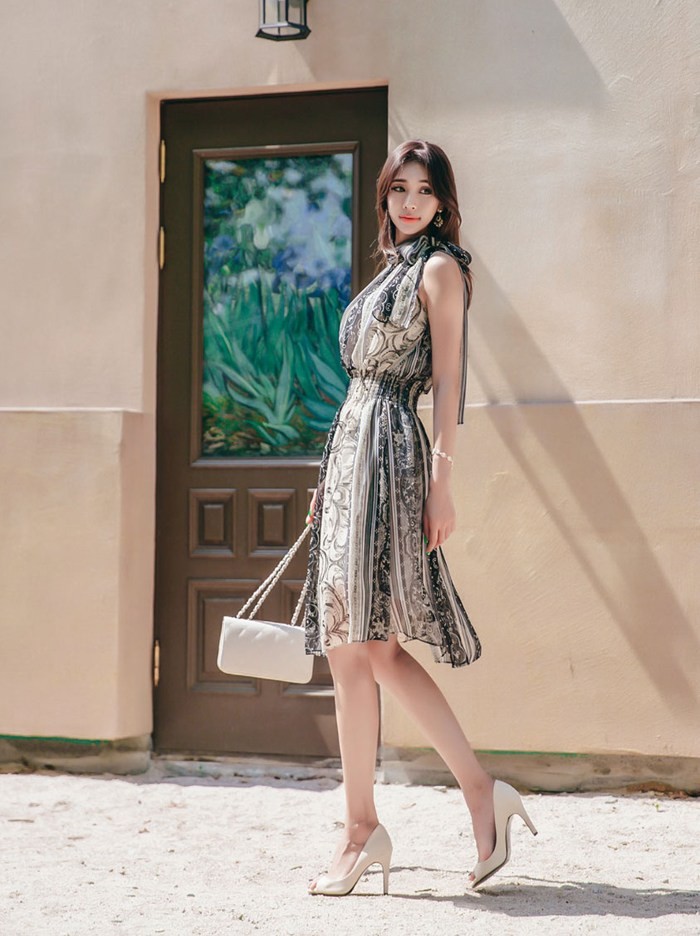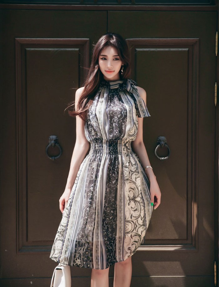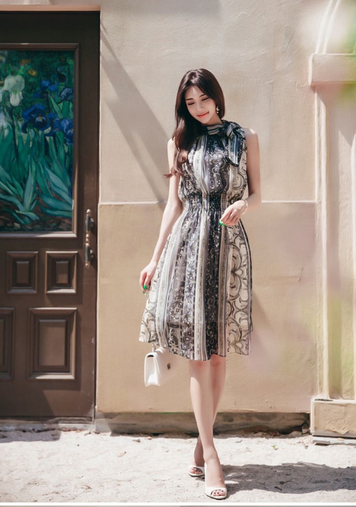 商品名:ワンピース ペイズリー柄 ノースリーブ 膝丈