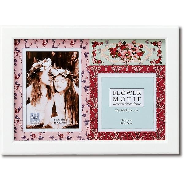 | 清潔感のあるホワイトのウッドフレームと、可憐なフラワーモチーフのマットの組み合わせが美しいフォトフレームです。 |