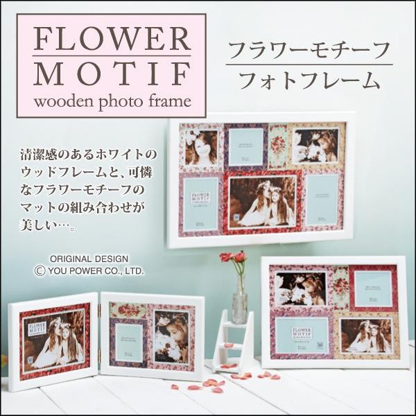 清潔感のあるホワイトのウッドフレームと、可憐なフラワーモチーフのマットの組み合わせが美しいフォトフレームです。 |
