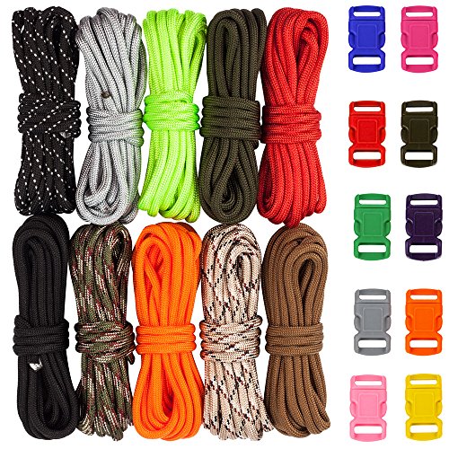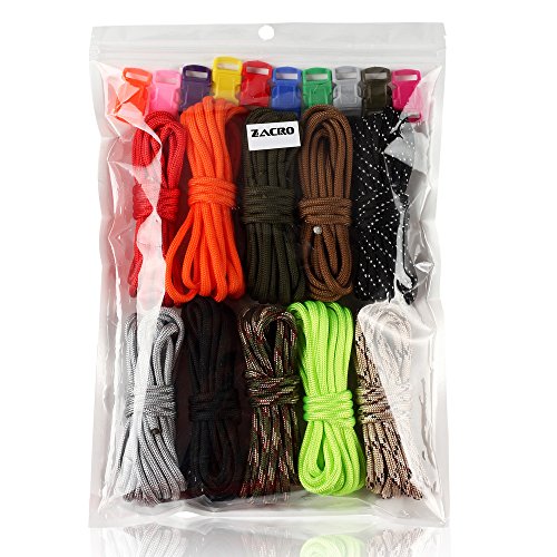 Zacro 400lb Survival Paracord Combo Crafting Kits in 10ft in 10 Colors with Pack of 10 Buckles