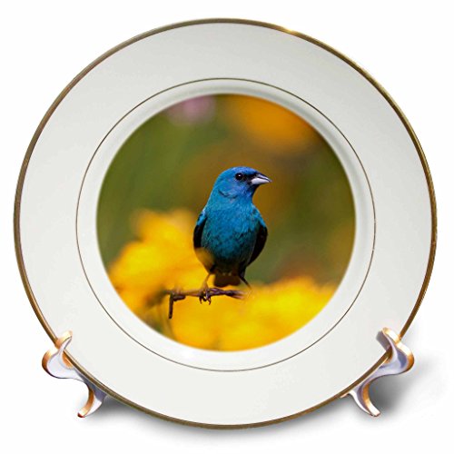 3dRose cp_207613_1 Indigo Bunting on Barbed Wire Fence, Marion, Illinois, USA Porcelain Plate, 8"