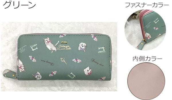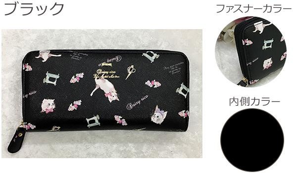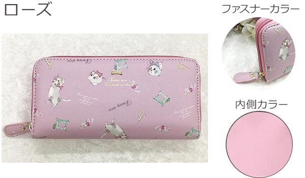 お札やレシート、小銭をすっきり収納できるのが魅力。デザインと使いやすさを兼ね備えたラウンド長財布です。ふわふわでかわいい、おてんばな猫ちゃんの柄です。 |