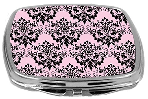 Rikki Knight Compact Mirror, Shabby Chic Black On Pink Damask