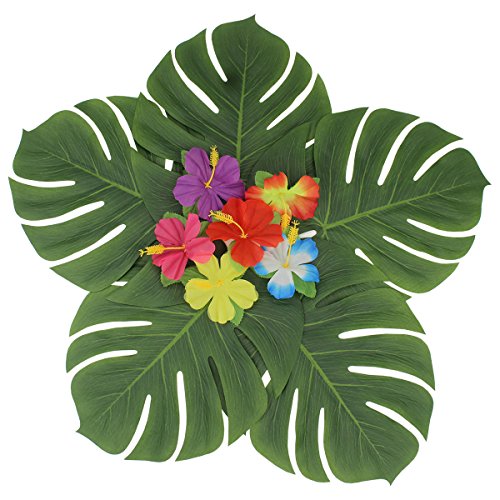 -. Feature : PACKAGE CONTENT: 12pcs Hawaiian tropical palm simulation leaves + 12pcs colorful summer flowers / MEASURE: Each Hawaiian tropical palm simulation Leaves measure 13.8inch in length and 11.5inch in wide, Summer Flower measure 4.6inch in diameter / NATURAL DESIGN AND COMFORTABLE TOUCH: High quality and vivid imitation makes it looks like the real leaves and flowers / PERFECT FOR DECORATION: Reusable and durable for a jungle or rain forest themed event uses, create an authentic tropical island atmosphere / 100% SATISFACTION GUARANTEE: Backed by Qntry 30 days Money Back Guarantee and 24-hour customer support