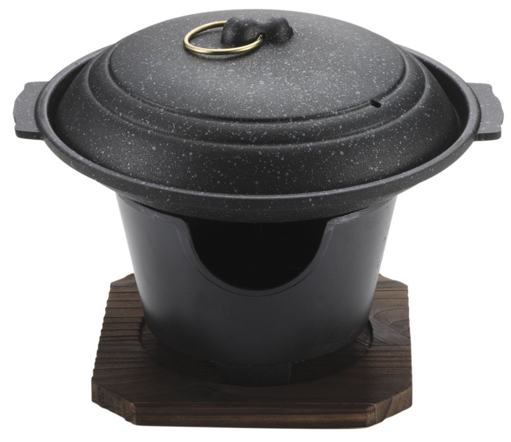 材質: 本体・蓋/アルミニウム合金(ふっ素樹脂塗膜加工)、コンロ/アルミニウム合金(焼付塗装)、木台/天然木