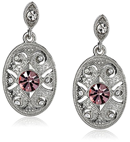 Downton Abbey "Boxed" Silver-Tone Light Amethyst Crystal Post Drop Earrings