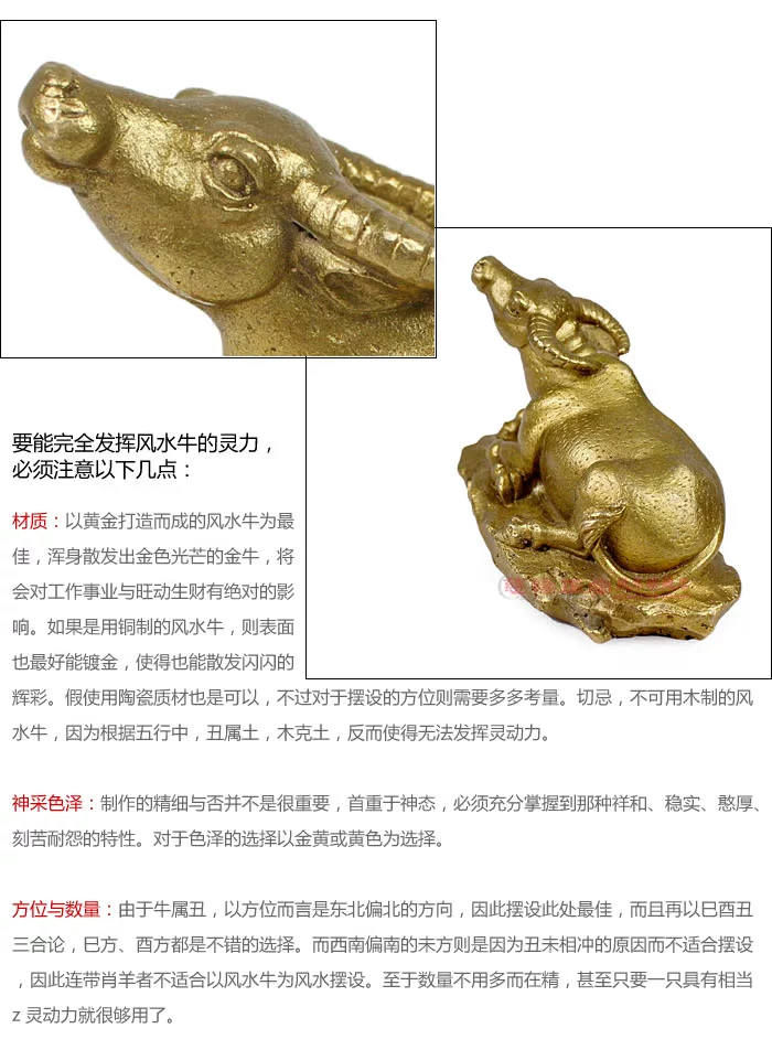 Cattle is mainly the role of Wang you to do business the most auspicious.Cows have a domineering a toughness where do you business peopleespecially the hit fortune people to soil cattle are the most ideal spendingmoney. As the home town of evil money wealth avoiding the villain. Forhome remedy northwest corner, family or shop housing lack of northeast corner are placed in the missing corner. Can the home town of evil, luckypoly gas; especially conducive to speculation and the official friends. In theshop or please a put, can get a good start lucky and move off, to help youBusiness Flourishes caiyuanguangjin. Personal home please and lucknatural rolling in money. Wang Shi Niu Nai stocks real estate financefinancial and banking are essential desk Wangcai treasure. Can be placedon the desk also can be placed in the shelves. Can also be hidden in theirregular use of the drawer.