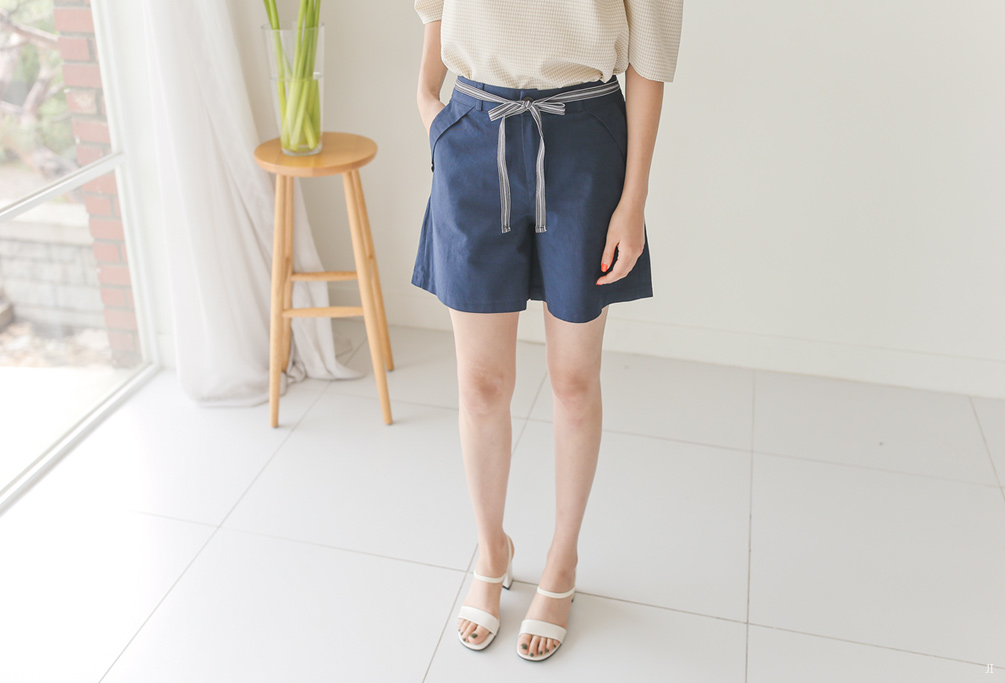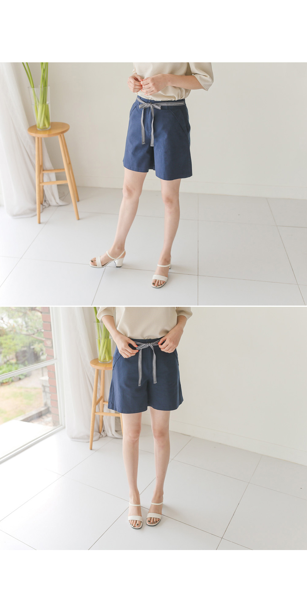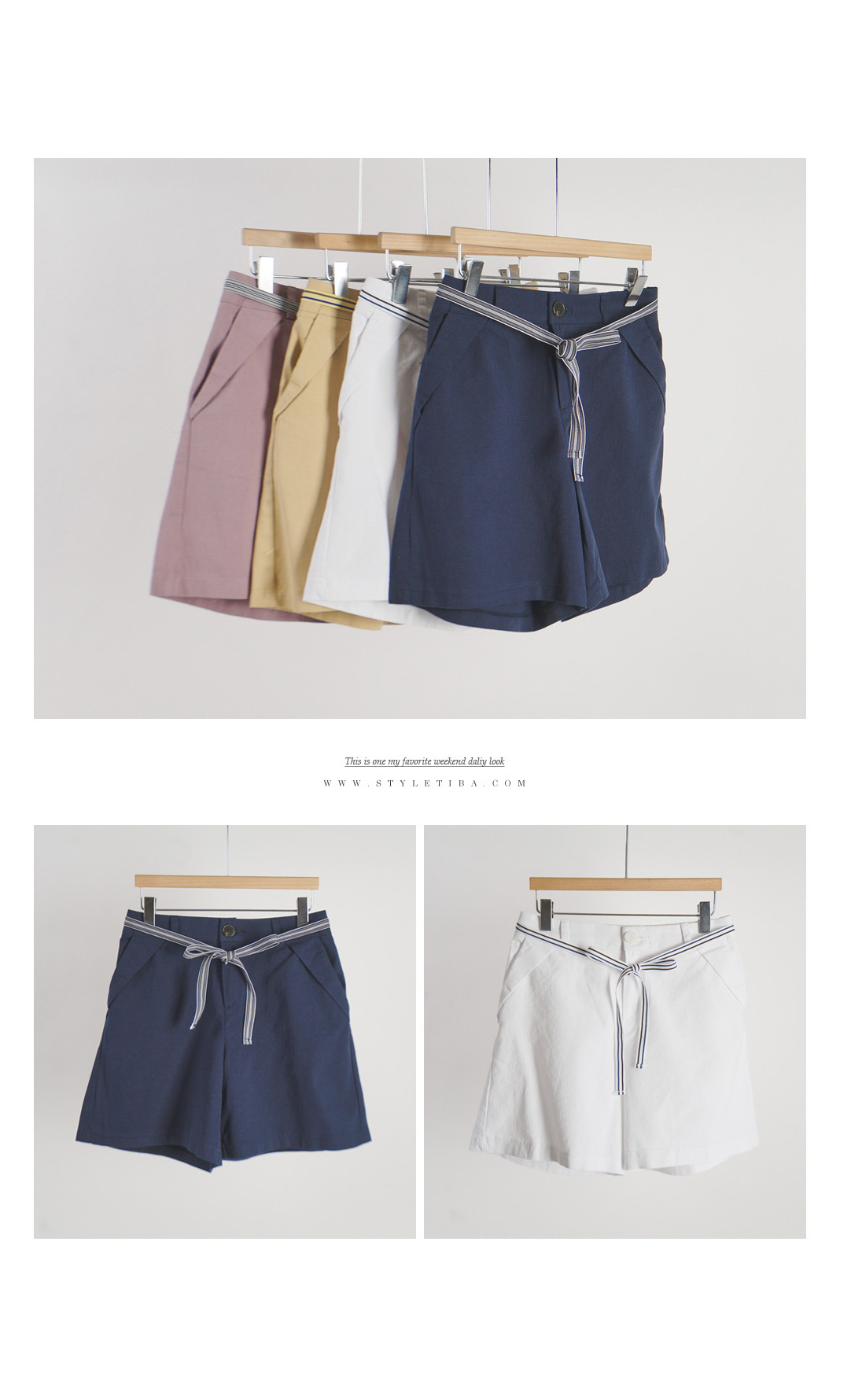 심플한 디자인에 배색끈 디테일로 포인트를 준 숏팬츠~!