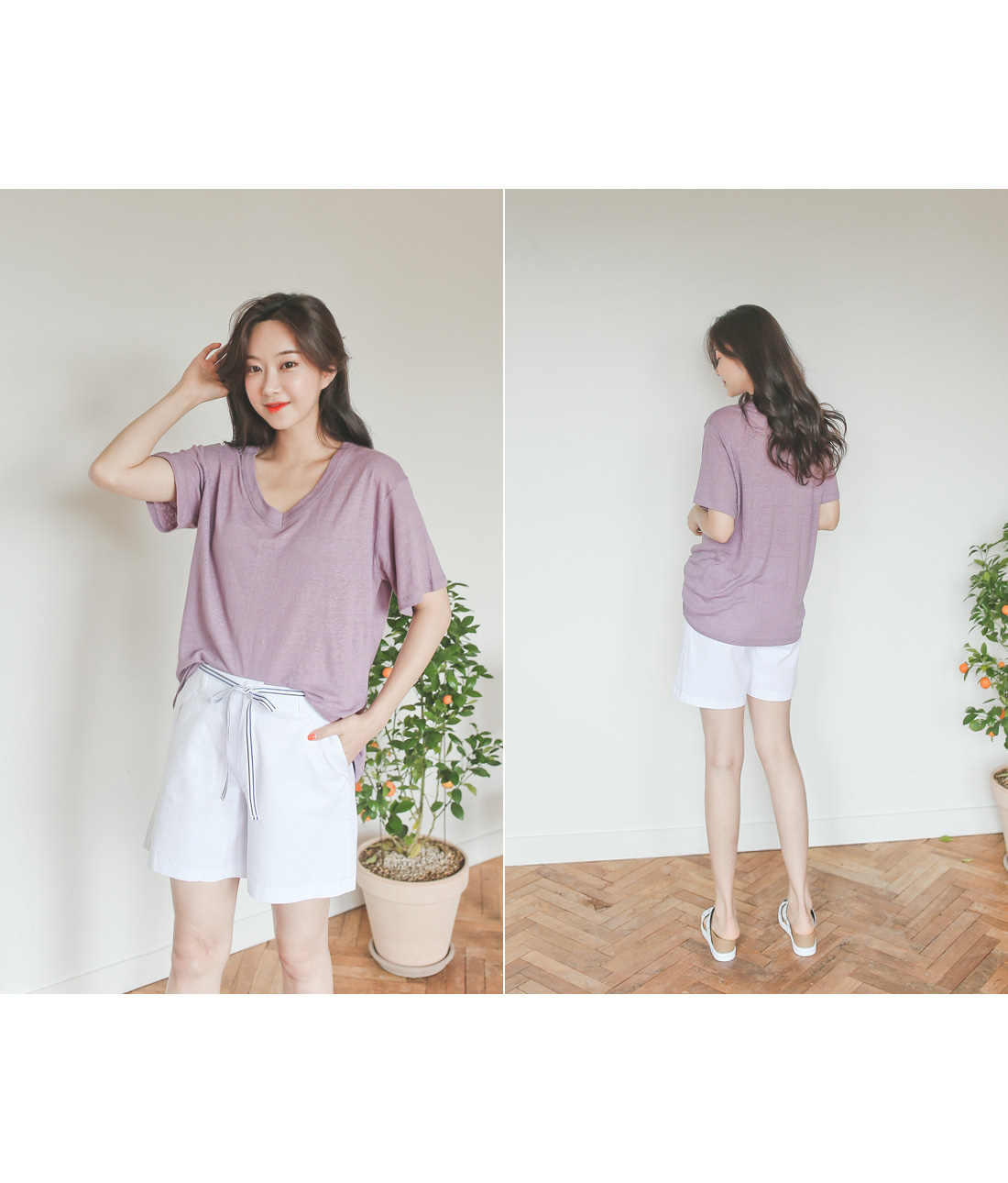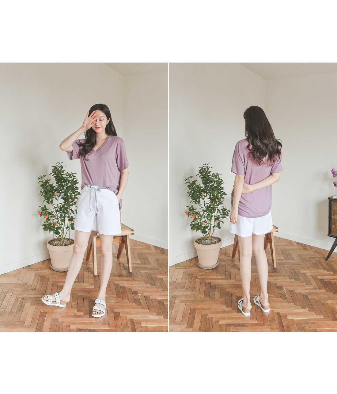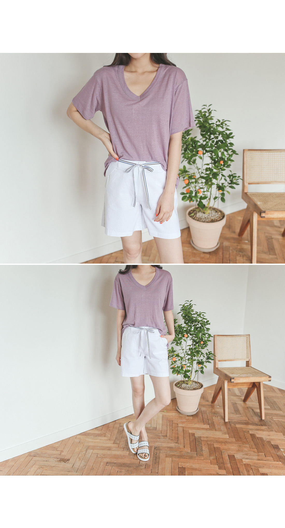 심플한 디자인에 배색끈 디테일로 포인트를 준 숏팬츠~!