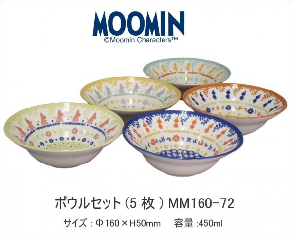 ムーミン、リトルミイ、スナフキンがデザインされたボールです♪サラダやスープにちょうど使いやすいサイズです。5枚セットだから毎日違うデザインで飽きずにより楽しく食事の時間を過ごせます♪ |