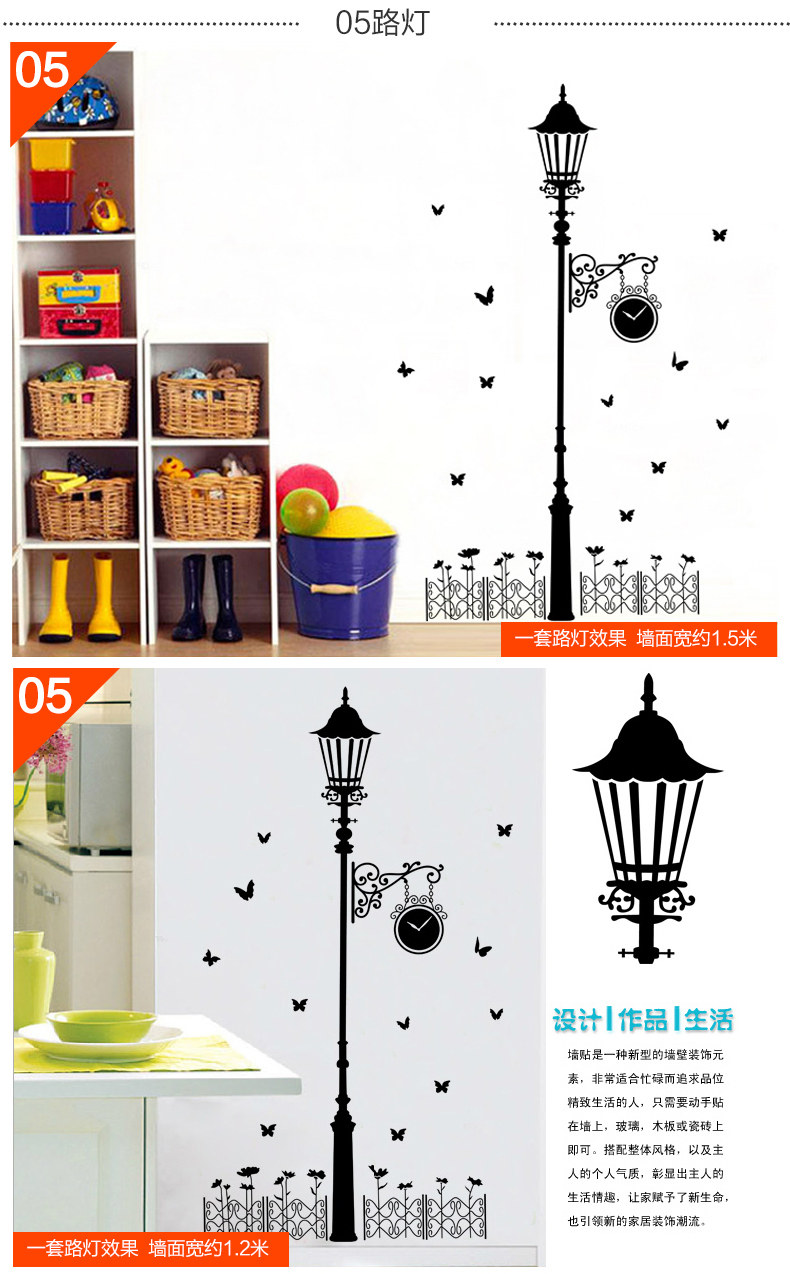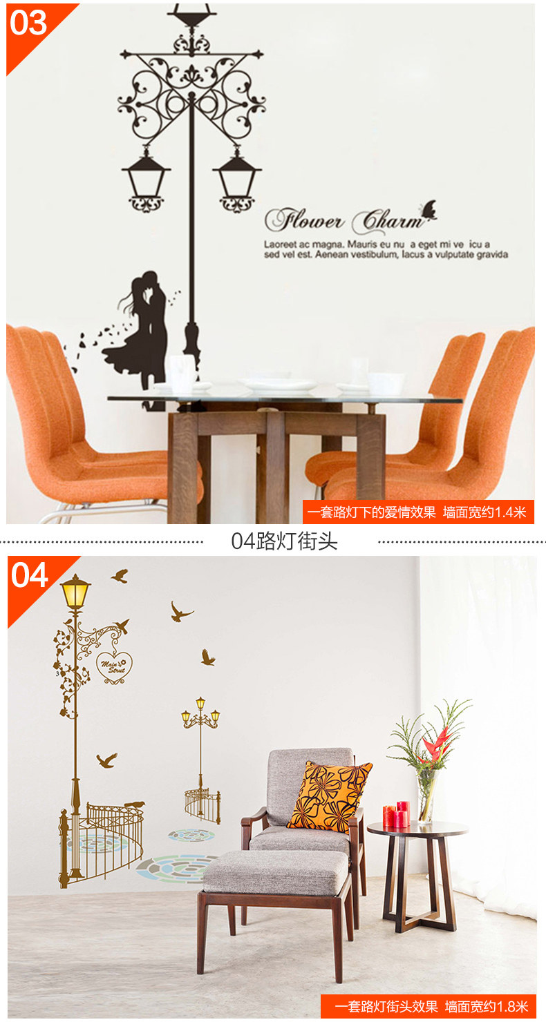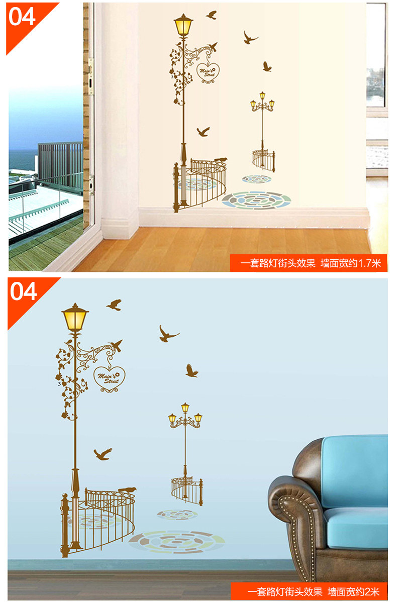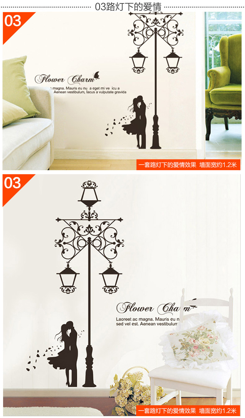墙贴客厅卧室楼梯房间装饰贴画创意 欧式路灯下的爱情墙壁贴纸