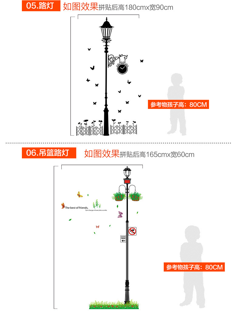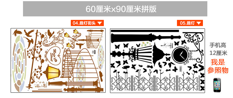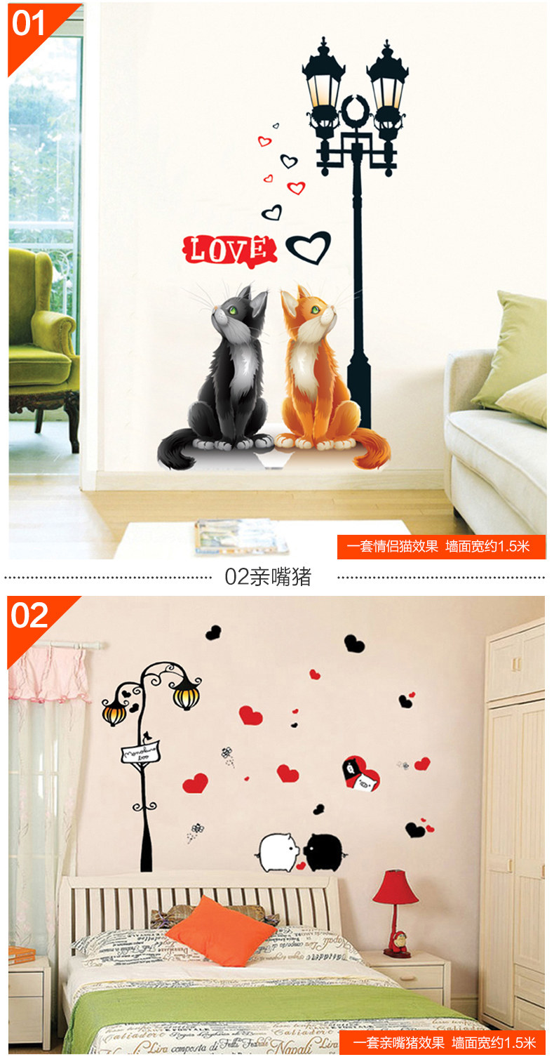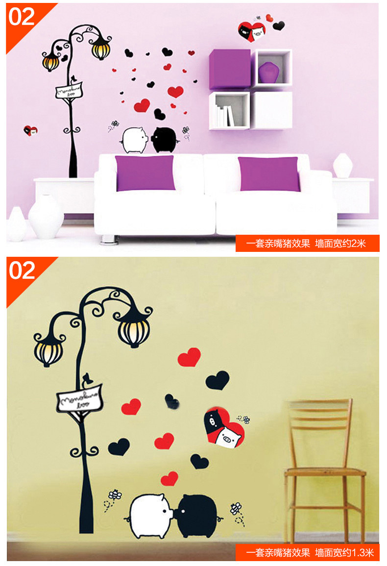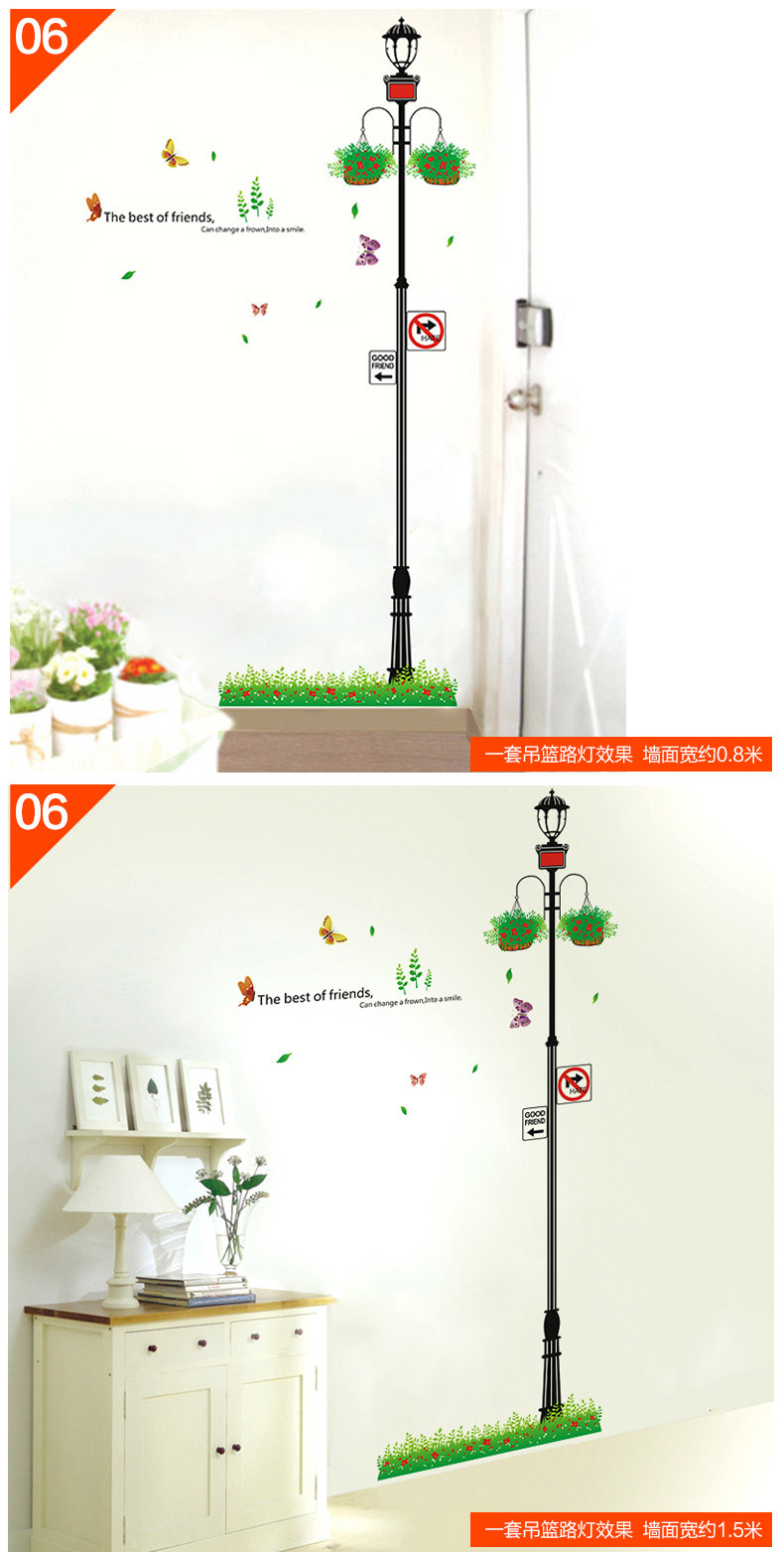 墙贴客厅卧室楼梯房间装饰贴画创意 欧式路灯下的爱情墙壁贴纸