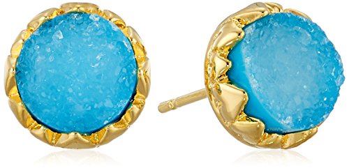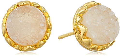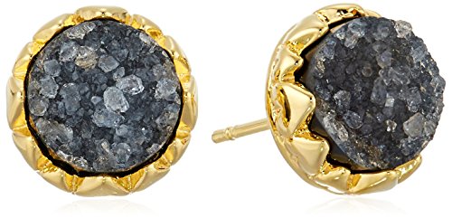 18k Yellow Gold Plated Bronze Genuine Neutral Multi Druzy Grey Color Round Stud Earrings