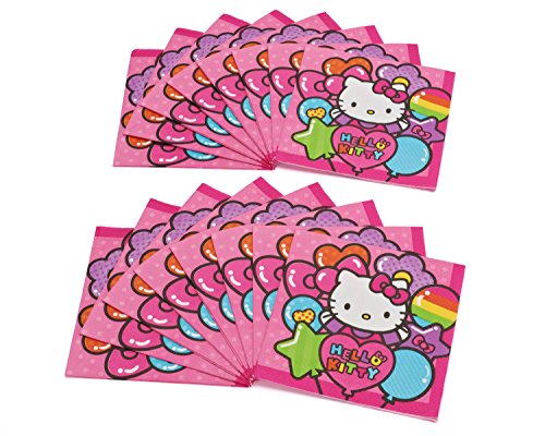 Adorable Hello Kitty Rainbow Luncheon Napkins Birthday Party Tableware (16 Pack), Pink, 6.5" x 6.5".