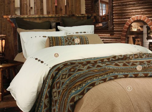 - Southwestern geometric design in blues and browns
