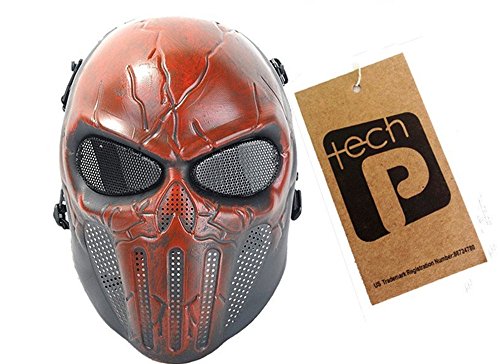 -. Binding : Sports -. Brand : TECH-P -. Color : Red and Black -. EAN : 0624365992666 -. Feature : INCREDIBLY LIFELIKE This scary ghost mask rivals the quality of professional movie props. / FINEST OF MATERIALS Skeleton mask crafted out of high-density fibers and foam, not ordinary plastic. / 100% NONTOXIC & ODORLESS Our protective mask gear contains no lead, other toxins or skin irritants. / WON'T COMPROMISE YOUR AIM Mesh covers on the tactical mask protect the eyes without blocking vision. / BE AT YOUR BEST IN OUR SKULL FACE MASK Breathable, lightweight & fully adjustable for comfort. -. Label : TECH-P -. Manufacturer : TECH-P -. MPN : DC-12 -. PartNumber : DC-12 -. ProductGroup : Sports -. ProductTypeName : SPORTING_GOODS -. Publisher : TECH-P -. Studio : TECH-P -. Title : Tech-p Punisher Skeleton Mask - Protective Mask Gear for Use As Tactical Mask & Airsoft and Outdoor Cs War Game Mask - Scary Ghost Skull Mask for Halloween - Red and Black Cosplay Mask -. UPC : 624365992666