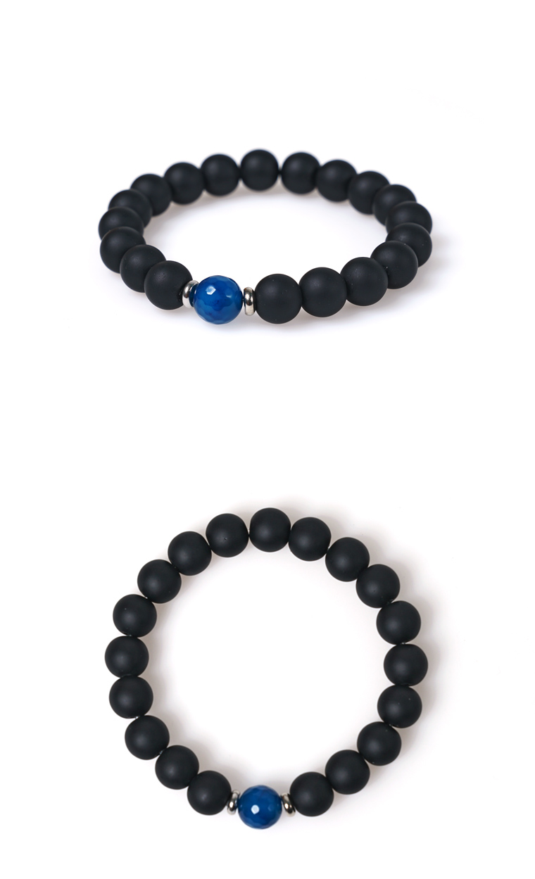 10mm블랙 무광오닉스에 블루컬러의 원석을 포인트로 제작된 원석팔찌입니다. 매트한 블랙톤의 원석에 써지컬스틸로 제작된 메탈장식과 컷팅가공된 블루원석이 잘 어우러져 매력적인 디자인을 만들어 냈습니다. 10mm의 두께로 살짝 볼드한 느낌으로 단품으로 착용해도 좋고, 슬림한 악세사리와 함께 레이어드해도 중심을 잘 잡아줍니다. 모던룩이나, 클래식룩 뿐만 아니라 캐주얼룩까지 잘 어울립니다. 커플팔찌로 착용하기 좋도록 남성용, 여성용, 주문제작 사이즈로 제작됩니다.