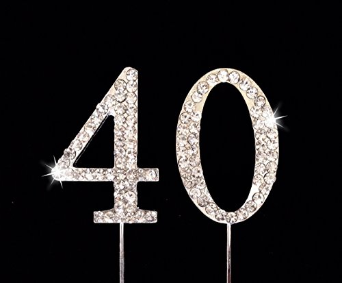 40th Birthday / Wedding Anniversary Number Cake Topper with Sparkling Rhinestone Crystals - 1.75