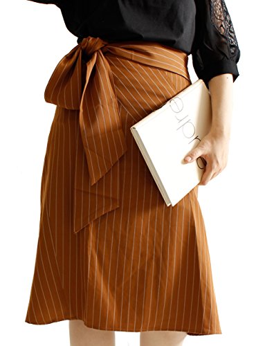 -. Title : (sawa a la mode)サワアラモード レディース Aライン ストライプ リボン 膝丈 スカート 体系カバー