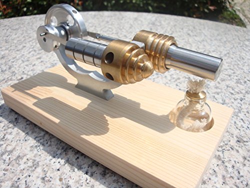 -. Feature : Product Name: Stirling generator model / Size: L * W * H (190X100X89) mm, Flywheel diameter 55mm, drive wheel diameter 24mm. / Weight: Engine Weight 566 g / Package: 1 * Engine, 1 * Alcohol lamps / This is an interesting model toys , can bring the heat by alcohol lamp , start flywheel, engine model can run fast , drive motor, generate electricity , throughout the entire process you can observe, understand the principle of the engine model , children and mechanical enthusiasts very favorite gift !