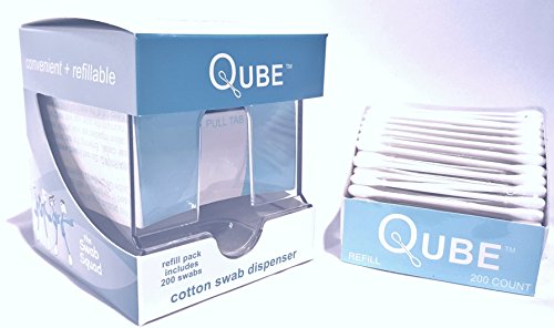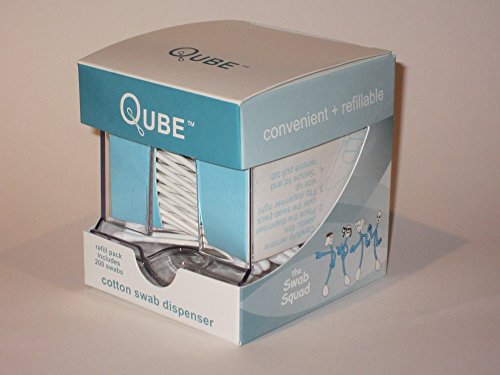 Keeps cotton swabs clean and accessible as they dispense one by one. Includes 200 swabs. 3-3/4" x 3-3/4" x 3-1/2".
