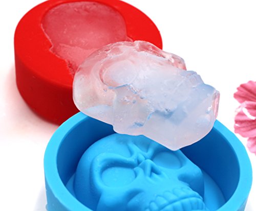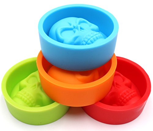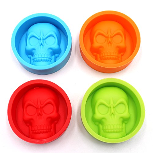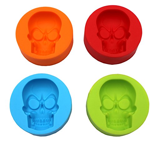 SPADORIVE Set of 4 Skull Head Silicone Ice Molds Ice Cubes Ice Maker 3D Skull Head Ice trays and Chocolate Candy Muffin Cake Baking Soap Molds - Whiskey Cocktails Party Favor Fun Bar Tool(4 Colors)