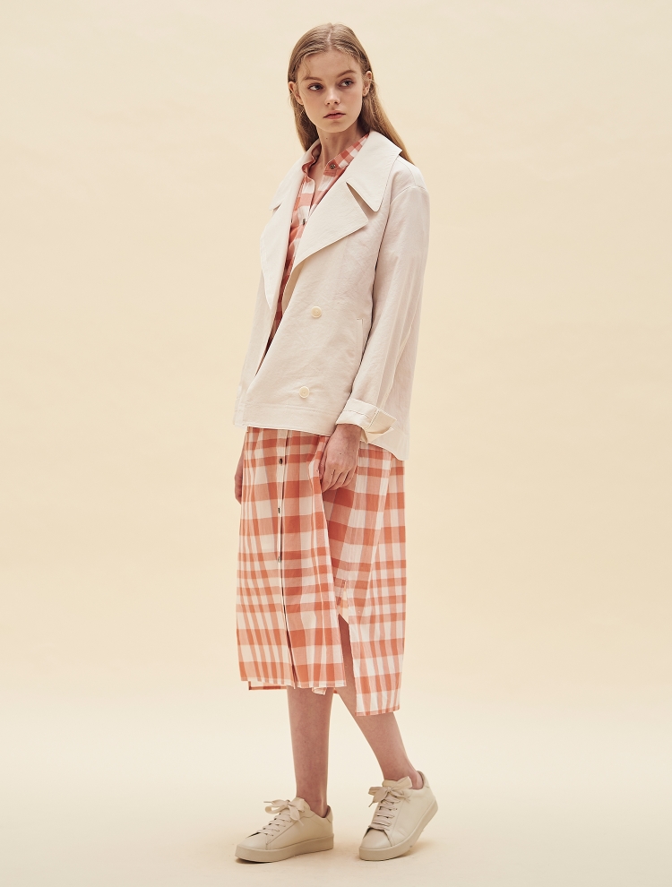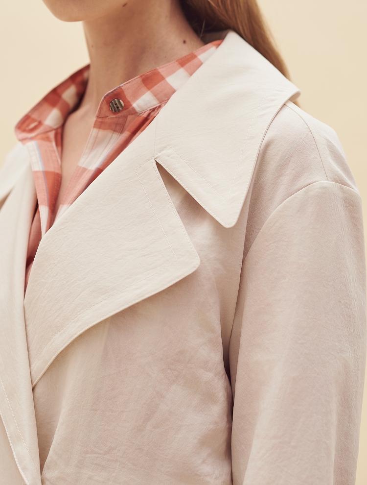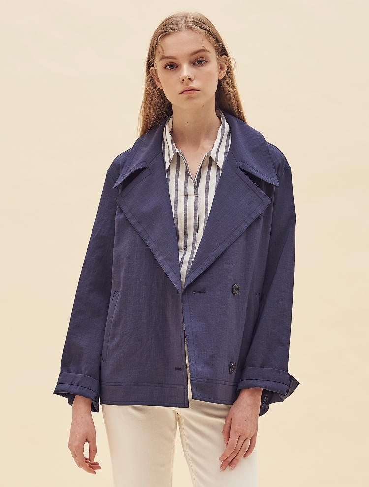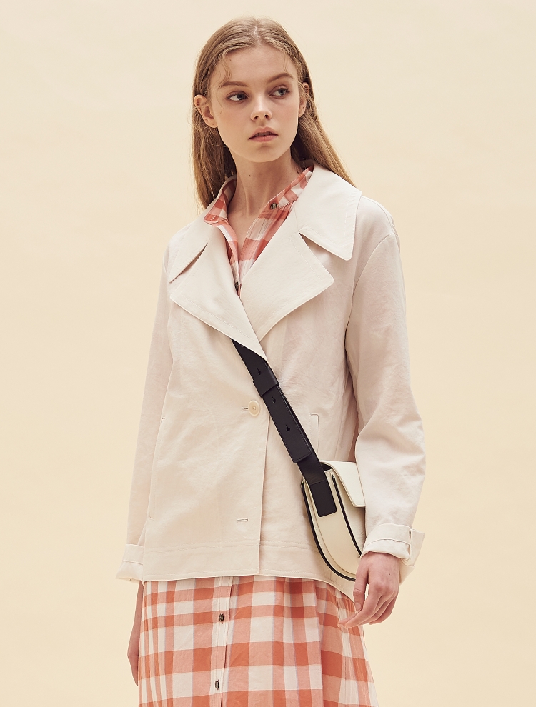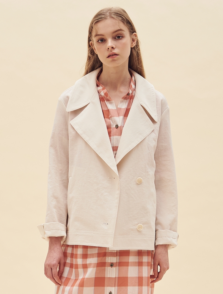 - 트렌디한 와이드 칼라 디자인으로 포인트를 더한 숏한 길이감의 재킷입니다.