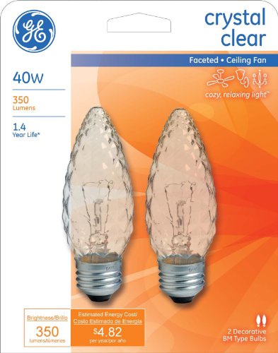 GE Lighting 40891 40-Watt 350-Lumen Decorative B13 Incandescent Light Bulb, Crystal Clear, 2-Pack