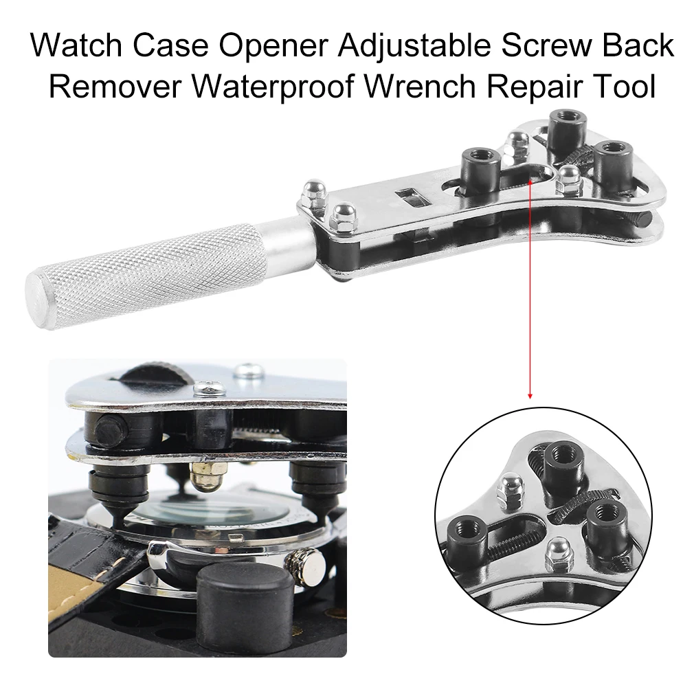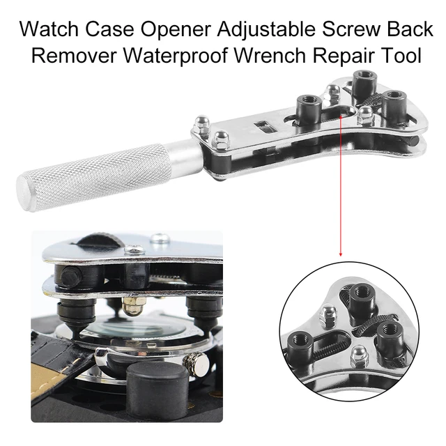 특징: 100% 브랜드 새로운 높은 품질. 이 시계 도구 케이스 오프너 쉽게 조절이 가능하게 개방 가장 다시 나사 유형 시계 케이스. 그것은 널링 추가 핸들 그립 조정 엄지 휠. 그것은 홀드 시계 3. 사용하여 조절 케이스 오프너, 쉽게 오픈 다시 케이스 당신의 시계. 쉽게 오픈 모든 다시 나사 유형. 딱 시계 수리 교체 배터리.