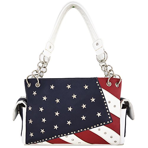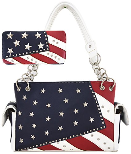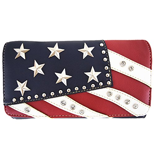 (Western Cowgirl)/Accessories/Handbags/DIRECT FROM USA/American Flag Stars and Stripes Rhinestone Women Leather Handbag Country Purses Wallet Set Red ...