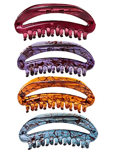 Prettyou 3.9" Plastic Flower Claws Crystal Banana Hair Clip for Women Girls, Pack of 4