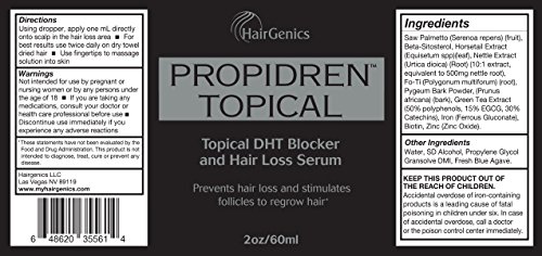 Propidren by Hairgenics FDA Approved Hair Growth Serum with Powerful DHT Blockers to Prevent Hair Loss, Stimulate Hair Follicles and Help Regrow...