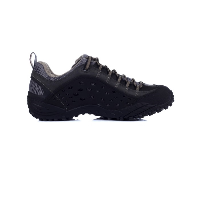 오솔라이트 풋베드를 적용하여 충격흡수를 도와주고 비브람 아웃솔을 통해 강한 접지력과 내구성을 제공하는 등산화.