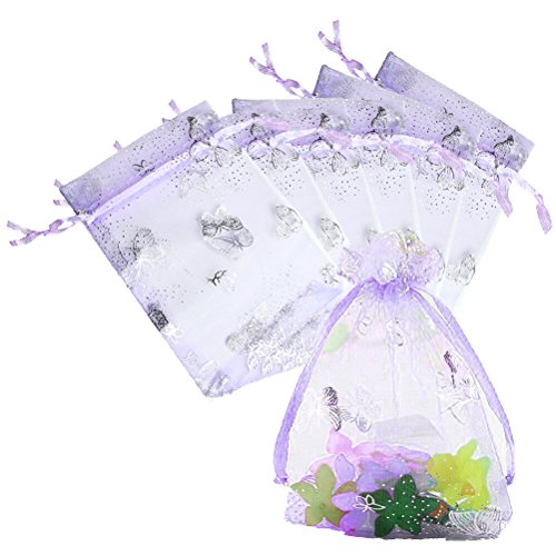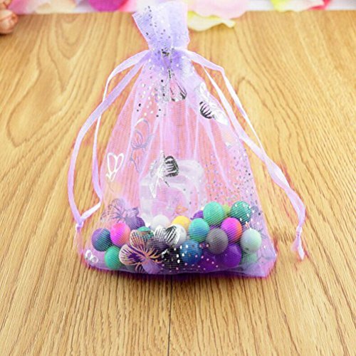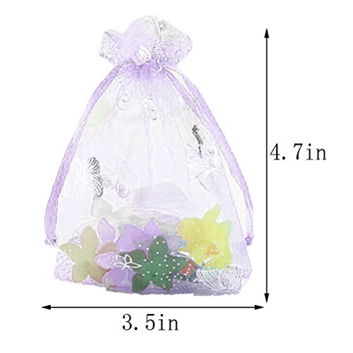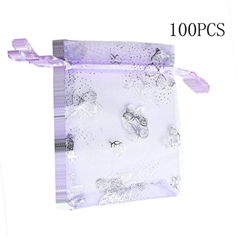 Pengxiaomei Organza Gift Bags, 100pcs Drawstring Jewelry Candy Chocolate Favor Pouch Bags Multi Colored Party Wedding(4.7x3.5-inch),Purple
